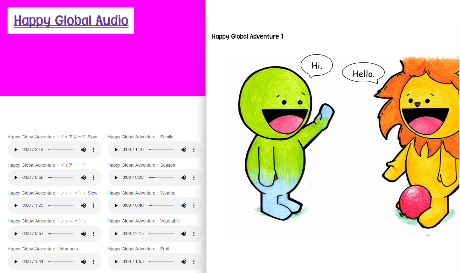 Adventureは、弊社のオリジナルの絵本教材です。オンライン上でオーディオ教材を聞いていただけます。