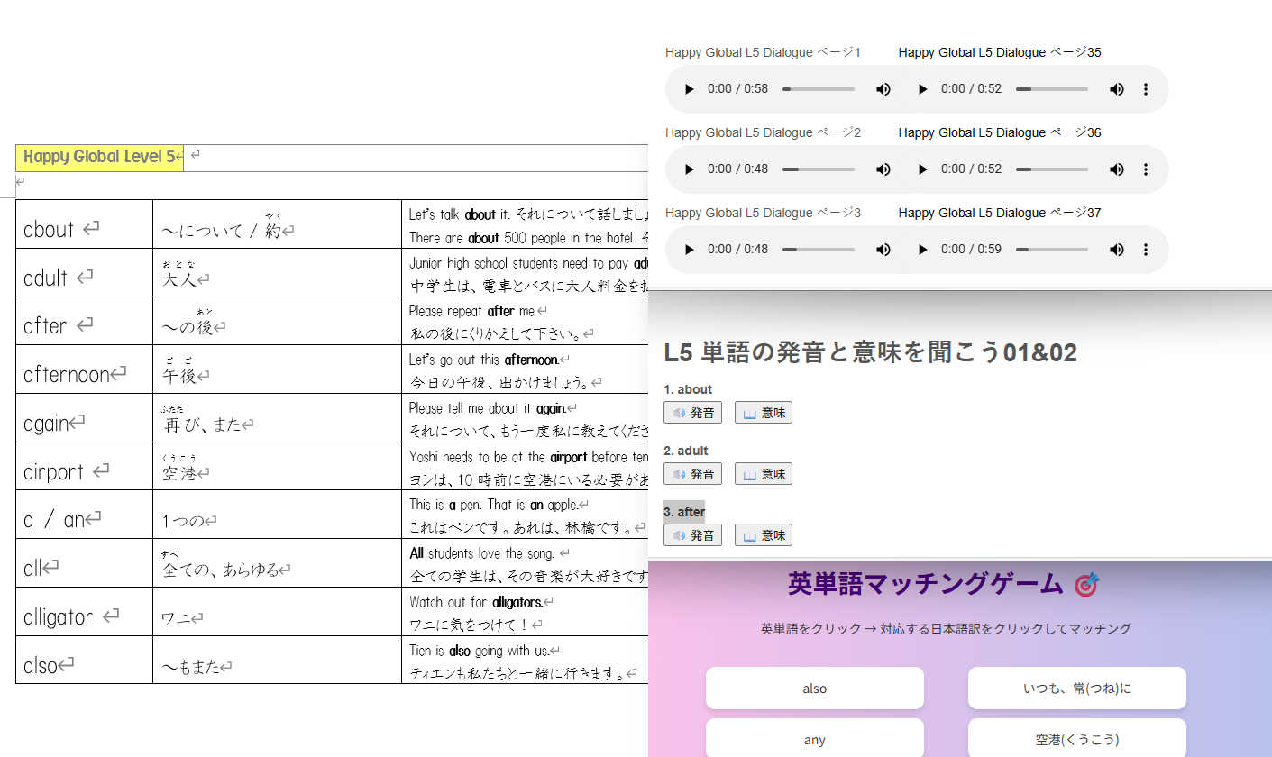 アカデミックな能力への転換を目指すべく、弊社オリジナルテキストで単語力と読む力を養っていきます。オンライン上でオーディオ教材を聞いていただいたり、簡単にできる単語ゲームなどを通じて自習学習をしていただけます。